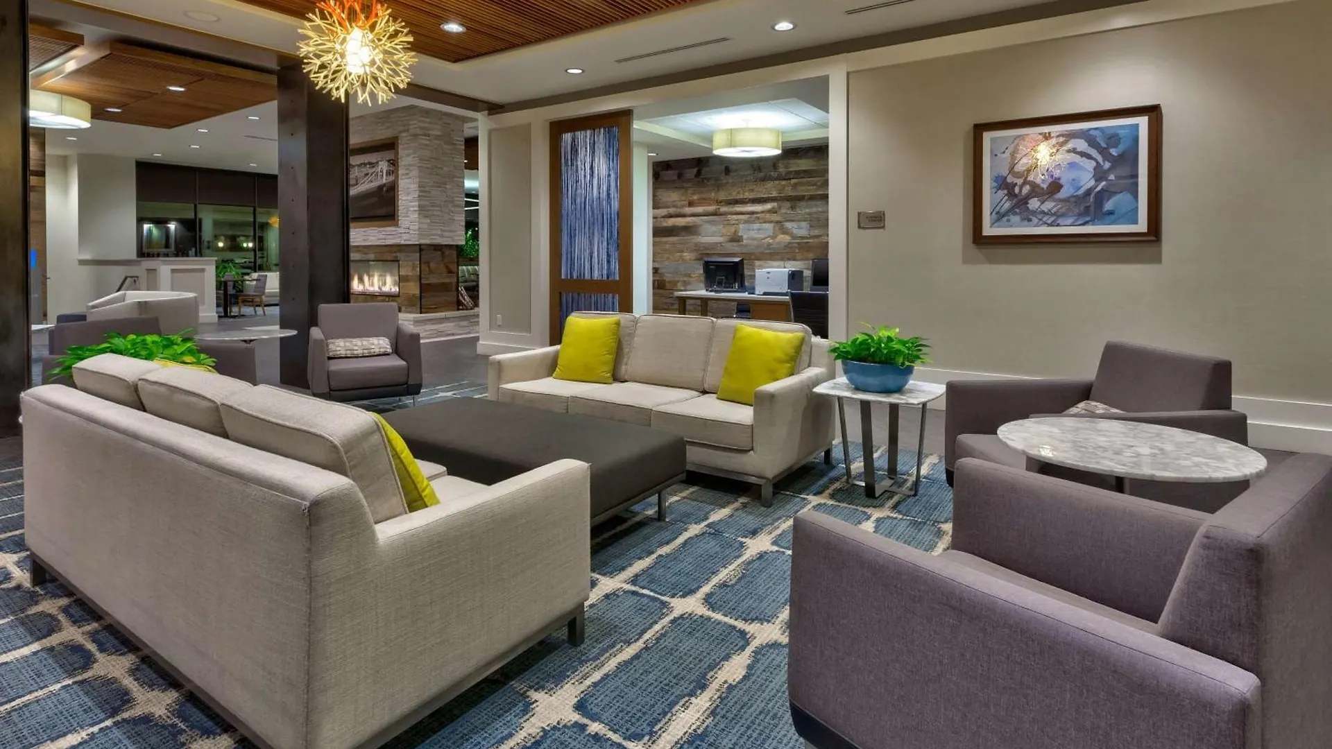 The Homewood Suites offers rooms with a sitting area and a kitchen featuring an ironing set and an air conditioner, along with cable channels. They are decorated with elegant furniture.